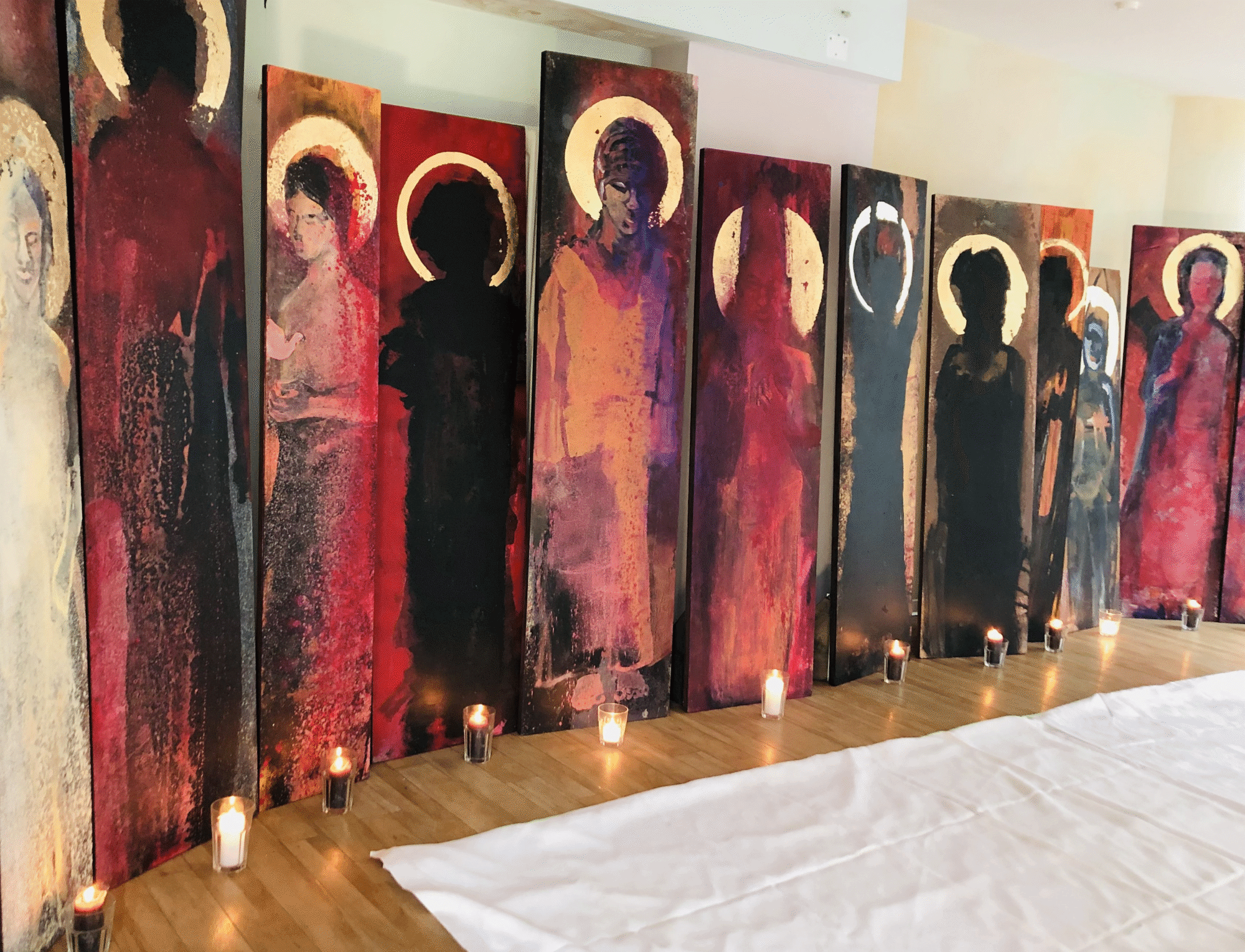 Vom Mittelalter bis ins 19.Jhd wurden sie an Portalen, Pfeilern, Glasfenstern, auf Apostelbalken,an fast allen kirchlichen Geräten, meistens mit Jesus in der Mitte dargestellt.